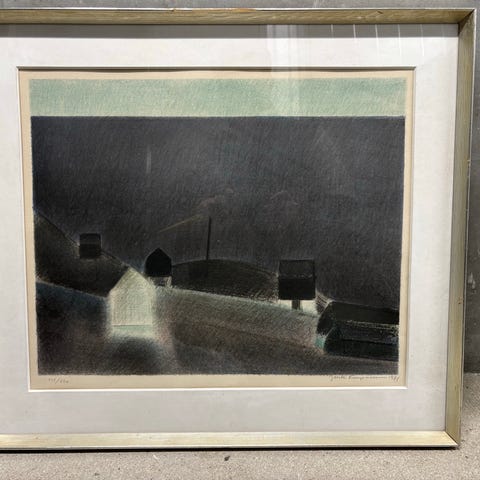 Signeret tryk i aluramme, fra 1970erne.