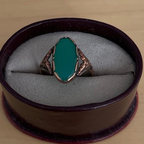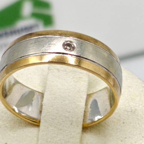 Guldring 14 karat med sten. Stemplet 585. Vejer 8 gram. Brugt. Salg for offentlig myndighed.