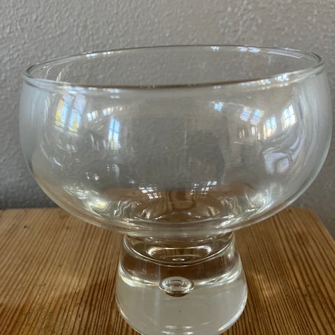 Fine balloonglas i tre størrelser. De karakteristiske glas med store luftbobler og blåt skær designet af Per Lütken, Holmegaard Glasværk. Disse glas er fra 1964 -1965.