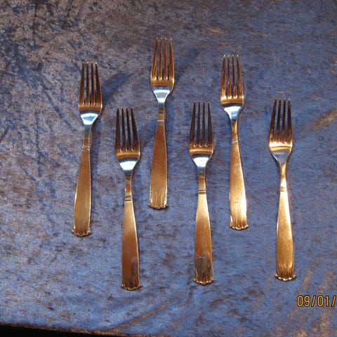 Komplet spiseservice i pletsølv, 49 dele. 12 spiseskeer, 12 gafler, 11 knive, 12 teskeer, opøseske og stegegaffel. Vejer 3000 gram. Brugt og i pæn stand.