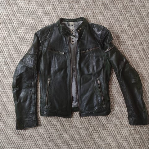MDK læderjakke til kvinder i str. 34. Jakken er fremstillet i ægte læder og er sort. Klassisk kort model med lynlås foran og lynlåslommer. Indvendigt foer for øget komfort. Velegnet som overgangsjakke eller til hverdagsbrug.