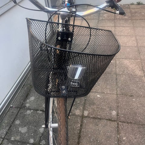 Børnecykel med 26" hjul i hvid farve. Af fransk mærke Mustang. Cyklen har lige styr, kædeskærm, skærme for og bag samt bagagebærer. Der er monteret støtteben, pedaler med reflekser og lygter/katadioptere bagpå. Jeg har mistet nøglen til den fastmonterede lås. Egnet som daglig transportcykel til større barn. Min datter er ca 150 cm høj og den Passer hende.