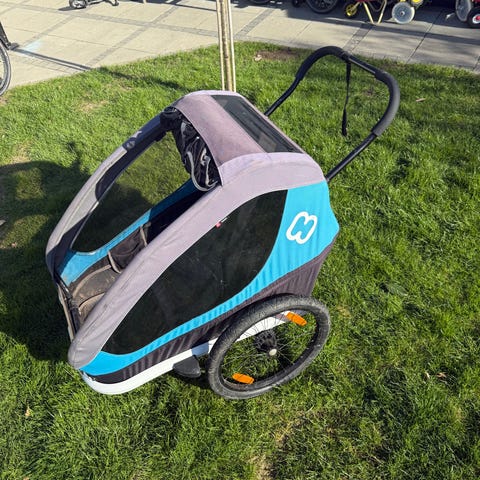 Cykelanhænger til børn med sikkerhedssele gul/grå