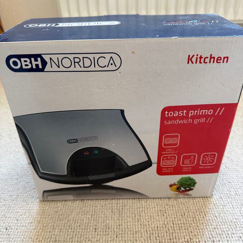 En uåbnet og ubrugt lækker toaster som jeg modtog som gave igennem et tidligere arbejde.