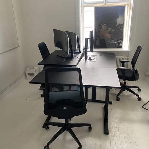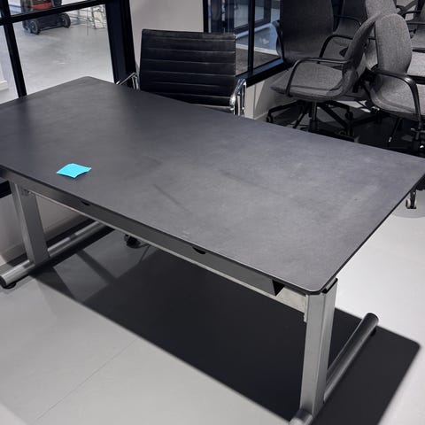 sælger 3 x sorte hæve/sænkeborde med læder bordplade.