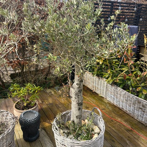 Oliventræ ca 180 cm. Skyder hvert år. Skal have ny kurv. Fast pris