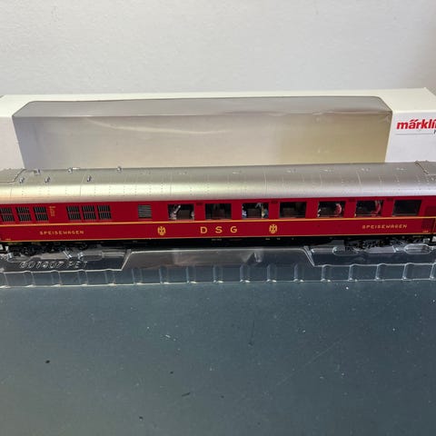 Virkelig lægger og veludført 2. klasses kupévogn "Schürzenwagen" fra Deutsche Bundesbahn (DB). Vognen har installeret Märklins LED paneler og strømførende koblinger. Se også mine andre modelsalg.