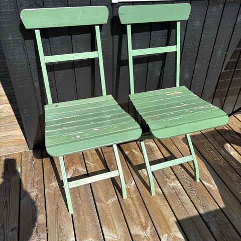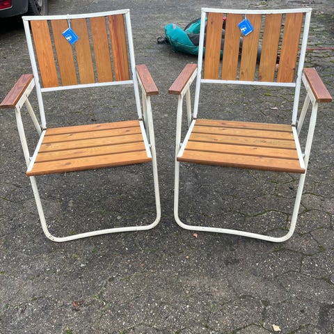 2 stk ældre klapstole/campingstole i bejdset bøgetræ.