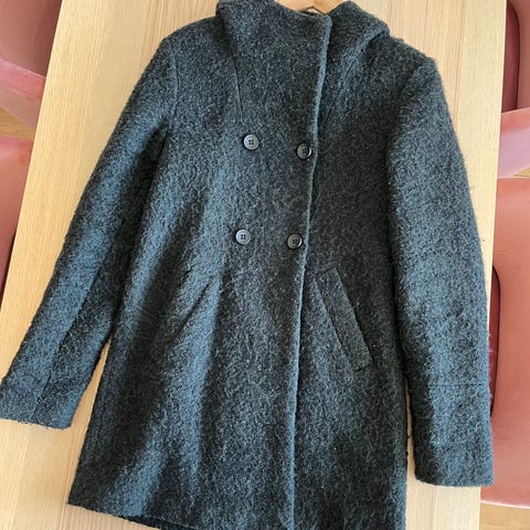 Vero Moda vinterjakke til kvinder i str. S. Jakken er grå og har knaplukning foran. Den har store frontlommer med klap og knap, samt bælte- og remdetaljer i taljen, der giver mulighed for justering af pasformen. Kraven er bred med knapdetaljer. Egnet som yderjakke i den kolde sæson.