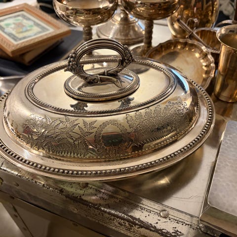 Sælger to smukke dele fra Mogens Ballins Efterfølgere. Sættet består af en elegant lågskål (sukkerskål) og en matchende lille åben skål.