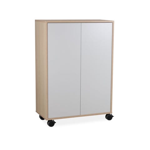 Kontorskab. Sort korpus. Eg låger. Lås. Skydelåger.