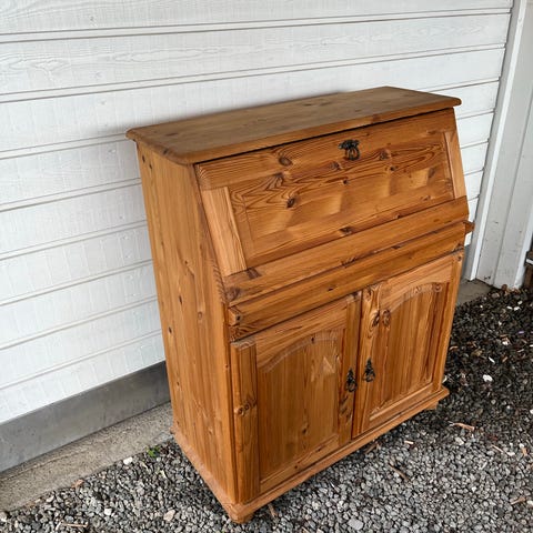 Fint lille kontorskab med skydelåger med lås. Skabet er inddelt i 2 rum.