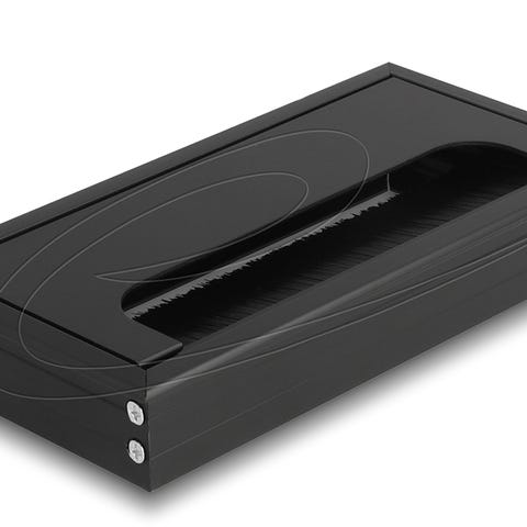 DeLOCK kabelgennemføring (160 x 80 x 28 mm) | Kabelgennemføring til bord med hængslet låg og børste. Giver pæn kabelføring, beskytter mod støv og passer perfekt i moderne arbejdsborde. | PRIS-MATCH!