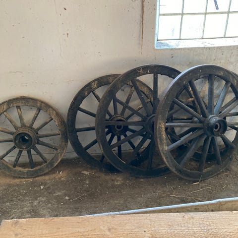Hestvogn til mindre heste eller ponyer. Vognen fremtræder pæn og vedholdt med gode dæk. Bænk til 'cheføren' og 2 bænke på ladet til passagerer.