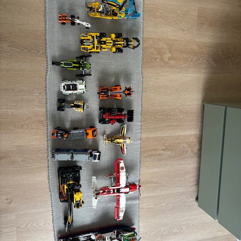 Blandede klodser og byggesæt. Samlingen består af forskellige LEGO dele, køretøjer, rumfartøjer, bygninger og minifigurer i flere farver. Der medfølger også løse klodser, plader og mindre modeller, som kan bruges til fri byggeleg eller til at supplere eksisterende LEGO samlinger.