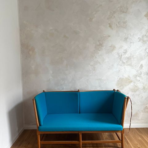 Mogens Hansen tremmesofa med tremmer hele vejen rundt. Kan skilles af for nemmere flytning. Skal afhentes på Nørrebro ved søerne. Sofa med patina. Lysebrune læderpuder der trænger til at blive smurt.