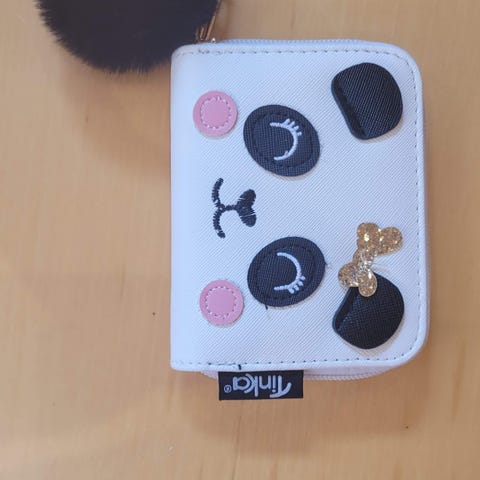 Pung med kattemotiv i hvidt design. Pungen har lynlåslukning hele vejen rundt og flere indvendige rum til kort, sedler og mønter, herunder et separat rum med lynlås til mønter. Indersiden er mørk, hvilket giver god kontrast til indholdet og gør det nemt at finde kort og kontanter.