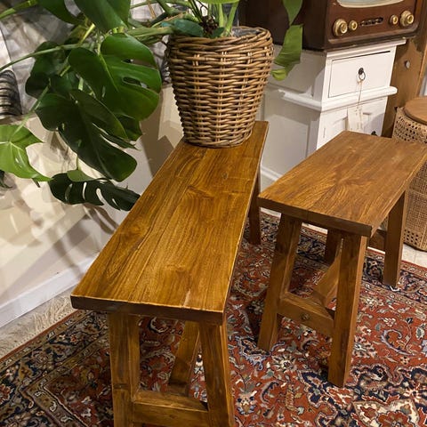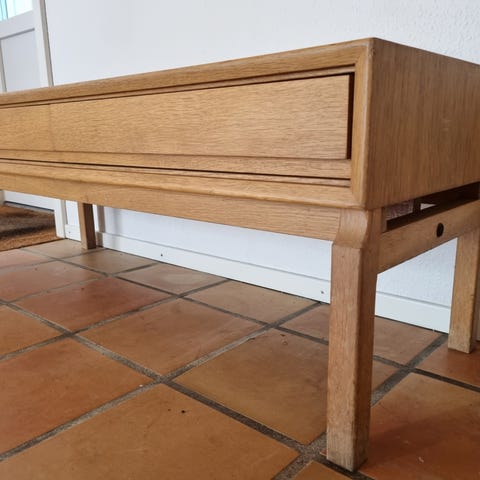 Sjælden retro entre- / telefonbænk i træ med skuffe.