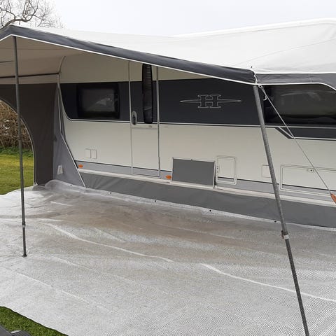 Isabella Sun Shine Plus fortelt i farven antracit. Forteltet er beregnet til campingvogn og leveres med A-mål A915/G16 og steltype 14/16. Oplysninger fremgår af mærkaten på transporttasken. Velegnet som solsejl/let fortelt til campingbrug, hvor der ønskes læ og overdækning foran campingvognen.