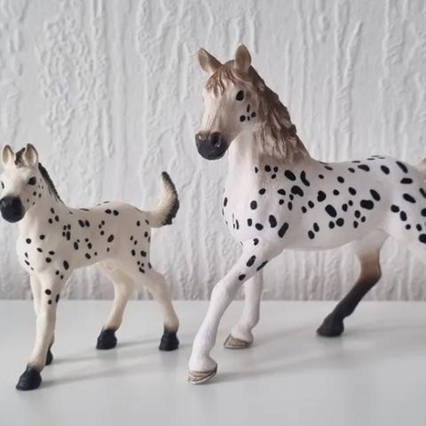 Schleich hestefigurer i plast legetøjsdyr. Sættet består af to heste i naturtro farver, velegnet til leg og samling. Figurerne kan bruges sammen med andre Schleich dyr og tilbehør til rolleleg og opbygning af små dyrescener.