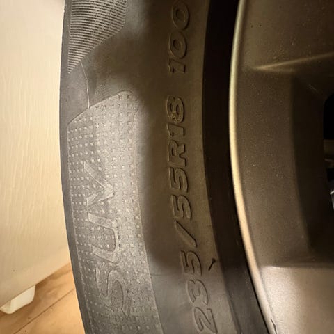 Dæk er ikke meget værd, men fine fælge med enkelte brugsspor.