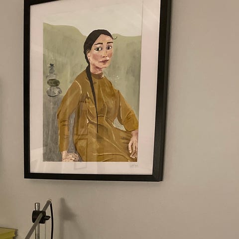 Uddrag af Portrætfoto. Malet i Akryl og forestiller Jytte Abildstrøm