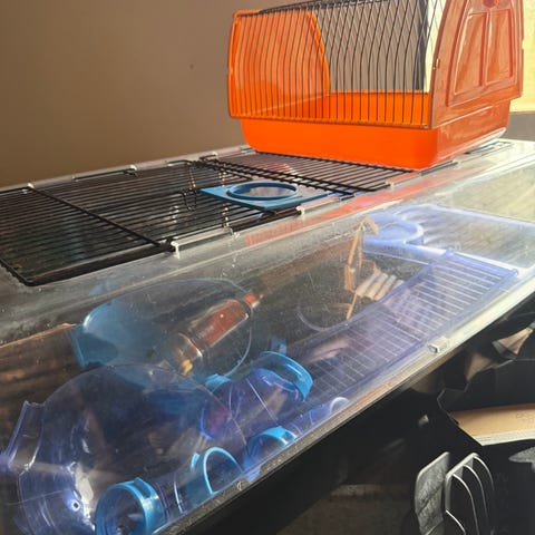 Hamsterbur med glasbund og tilbehør