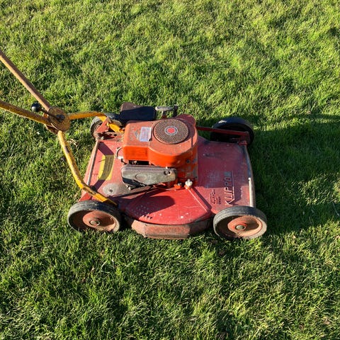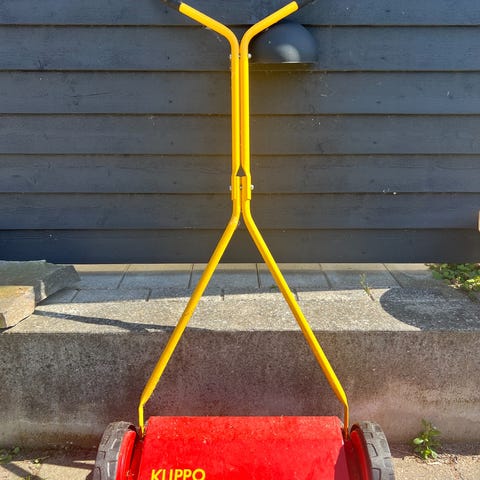 Klippo plæneklipper (Håndskubber). Den rigtige model, hvis du vil være grøn og uafhængig af brændstof og EL. Denne model har en positiv indvirkning på dit helbred. Den er god for blodomløbet og kondital. Få motion samtidig med at du trimmer haven. "Whats not to like" Klippehøjde kan justeres i 4 niveauer. Kniv kan slibes med fordel og lidt smøring af hjulene vil falde i god jord. Den virker ellers perfekt.