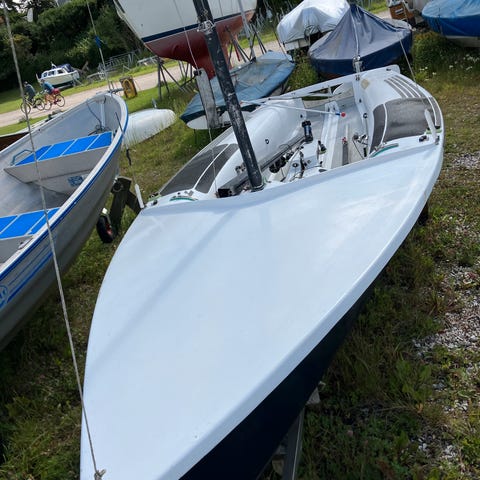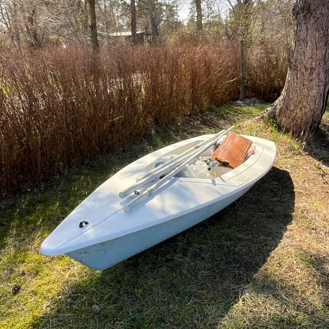 Optimist jolle, der nu må forlade min have.