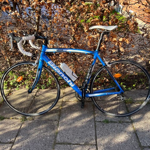Bianchi Via Nirone i størrelse 55 med Shimano 105 11 speed (22 gear) geargruppe. Cyklen passer rytter på mellem 170 og 180 cm. Meget flot og velkørende. Der følger Look Keo pedaler, flaskeholder, sadeltaske og lille cykelcomputer med.