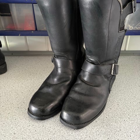 Hansa Leather Neron Boot motorcykelstøvler i sort læder i størrelse 47. Støvlerne er højskaftede med kraftig sål og forstærkninger ved ankel og sider. De er CE-mærkede efter EN 13634-standarden til motorcykelbrug og er velegnede som beskyttende fodtøj til kørsel på motorcykel eller scooter.