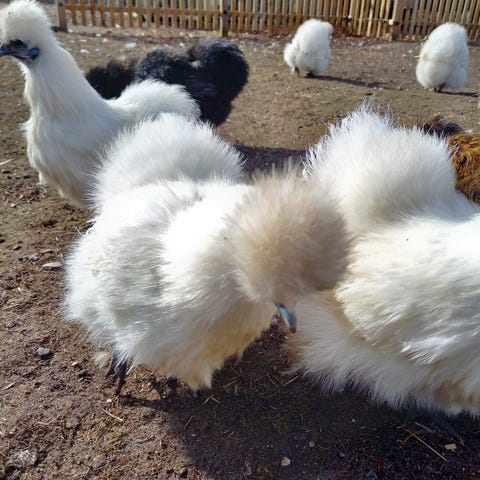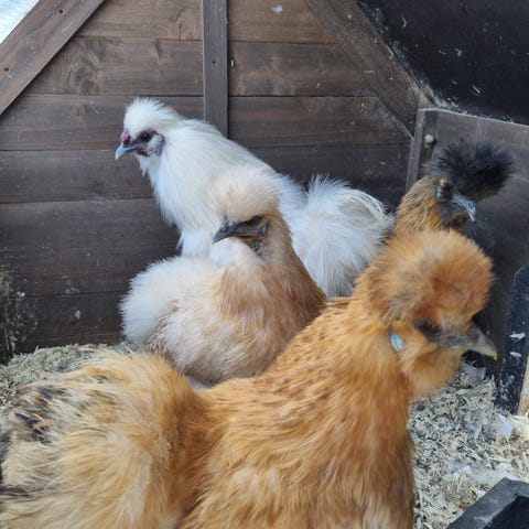 12 dværg silkekyllinger søger nyt hjem.