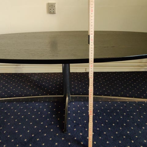 Bordet er brugt, men fremstår pænt med små skrammer hist og her, som nok kan dækkes med en form for sort maling.