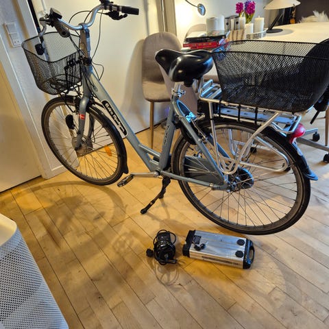 Elektrisk damecykel med lav indstigning og kurv