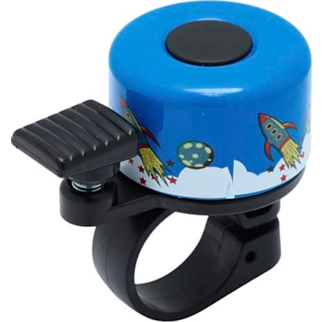 321GO! ringeklokke – blå med rumraket er en praktisk cykelklokke med et farverigt motiv, der gør det nemt at gøre opmærksom på sig selv under cykelturen. Klokken passer til de fleste cykelstyr og monteres hurtigt med det medfølgende beslag.