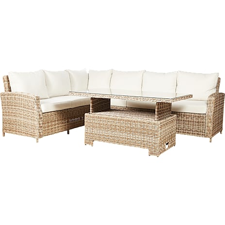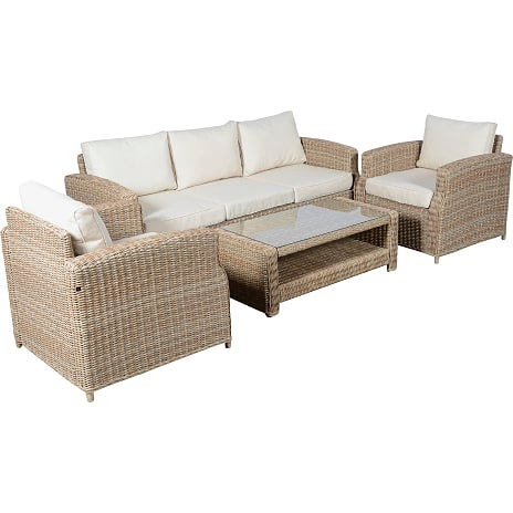 Loungesofa i elegant look og vedligeholdelsesfrit materiale. Hvis du er til det klassiske og stilrene udseende, så er en Vila loungesofa lige noget for dig. Med et moderne natur rattan look, kan sofaen pynte på enhver terrasse eller havestue. Med det komfortable armlæn kan man nemt sidde og nyde hyggen i flere timer.