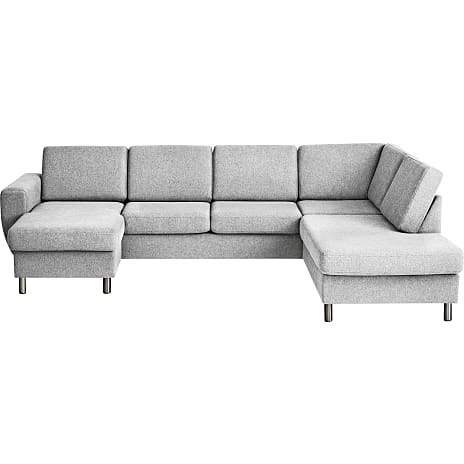 Stilren og meget rummelig sofa med chaiselong i nordisk design med slidstærkt Austin tekstil i fem flotte farver. Sofaen har afrundede armlæn, aftageligt betræk og nozag fjedre. Designet er minimalistisk og passer perfekt til den nordisk inspirerede stil.