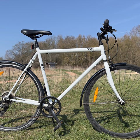 PUCH Fast er udstyret med 7 udvendige Shimano-gear, der gør det nemt at tilpasse farten til terrænet. Begge bremser er V-bremser (grip), hvilket sikrer effektiv opbremsning. Cyklen leveres med ringklokke som tilbehør, så du kan gøre opmærksom på dig selv i trafikken.