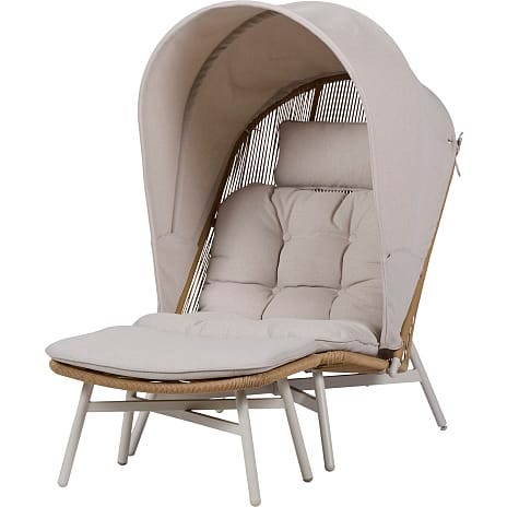 Flot og moderne baldakin stol. Ennits er helt perfekt til afslapning eller at læse en god bog. Der medfølger både ryg- og sædehynde som skal være med til at sikre den maksimale sidekomfort. Når vejret ikke er til udendørs hygge, anbefales det at hynderne opbevares et tørt sted.
