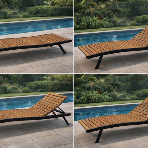 Skab et afslappende og funktionelt uderum med dette sæt, der består af et stilrent Bakkedal sidebord i sort og to komfortable Askely solsenge i textilene og aluminium.