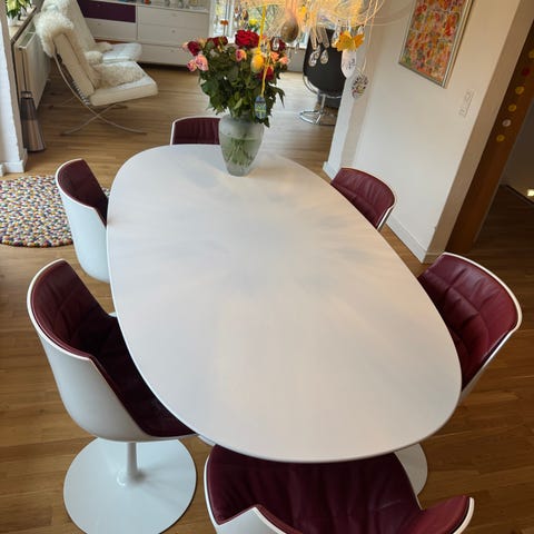 Et stilrent spisebord, der passer godt til moderne hjem og skaber en indbydende ramme om måltiderne.