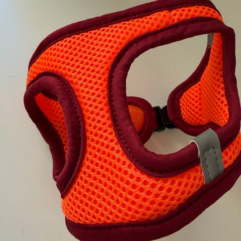 Ilse Jacobsen hundesnor i kraftig nylon i røde og pink nuancer. Snoren har karabinhage og metalring i sølvfarvet metal. Egnet til brug ved gåture med hund. Længden fremgår af billederne med målebånd. Sælger matchende sele i str xs