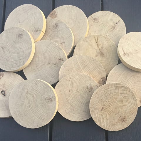 10 NYE Træskiver Egetræ ca. 9,5 cm - Lav dine egne små dekorationer