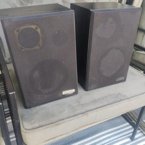 Bose 151 SE højttalere i hvid farve. Sættet består af to højttalere med buet front og metalfrontgitter. På bagsiden er der skrue-/terminaltilslutninger til højttalerkabler samt beslag til montering.