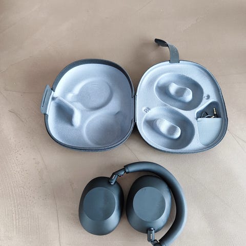 . Modellen leveres i et hårdt etui med plads til hovedtelefoner, opladningskabel og flyadapter. Over-ear designet omslutter ørerne for bedre lydisolering og komfort ved længere tids brug. Velegnet til musik, film og generel brug med kompatible enheder via trådløs forbindelse eller kabel, afhængigt af tilslutningsmulighederne på enheden.