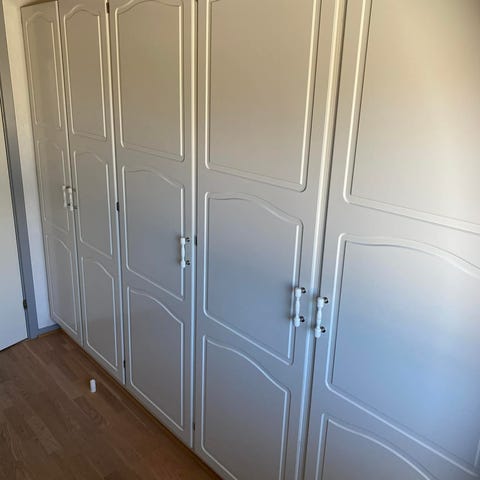 Begge skabe skal skilles ad og selv bæres ud til bil/trailer og køres væk.