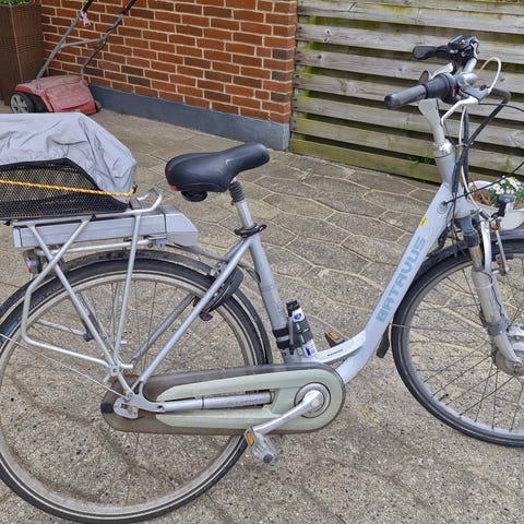 Batavus elcykel til kvinder med 53 cm stel og 28" hjul. Cyklen har lav indstigning og er udstyret med batteri placeret på bagagebæreren. Der er kurv foran, fulde skærme og kædeskærm. Velegnet som hverdagscykel til by- og pendlerkørsel.