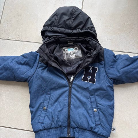 Den har hætte, gennemgående lynlås med trykknapper foran samt sidelommer med lynlås. Indersiden er glatforet for øget komfort.