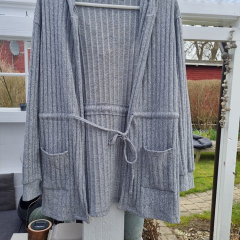 Blød og behagelig cardigan i 71 % akryl, 26 % polyester og 3 % spandex. Kan afhentes i Rødovre, Ølstykke eller sendes hvis køber betaler portoen.