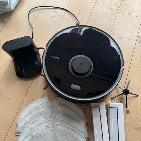 God robotstøvsuger, virker stadig trofast med støvsugning, vanddyssen er tilkalket, så ingen moppe funktion.